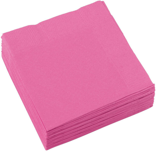 Aprócska rózsaszínű papír szalvéták. A csomag 20 darabot tartalmaz. Kiterített méret 25 x 25 cm.