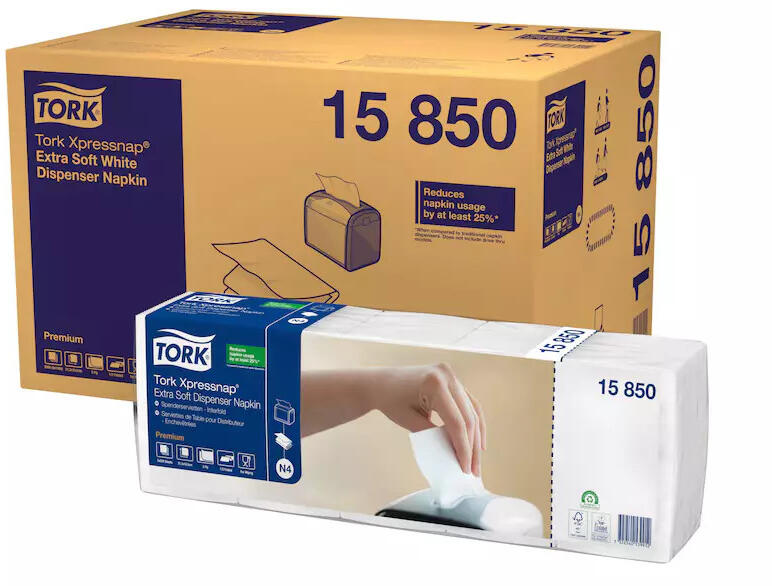 A Tork Xpressnap® Premium szalvéták tökéletesek az önkiszolgáló éttermekbe. Legalább 25%-kal csökkentheti a felhasznált szalvéták mennyiségét a hagyományos szalvétaadagolókhoz képest. A 2 rétegű Tork Xpressnap® Extra Soft fehér adagolós szalvéta olyan létesítményekbe ajánlott, ahol egyaránt fontos a minőség és a gazdaságosság.