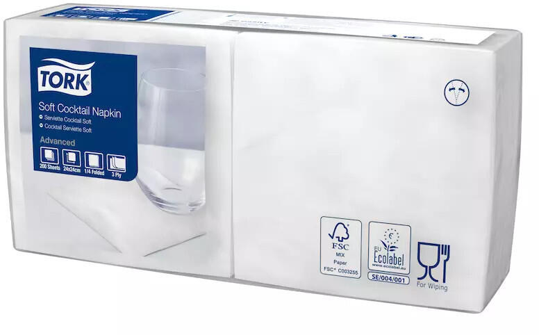 Essity GmbH Tork szalvéta koktél, 24/3 FEHÉR, 200 Lap/ csomag