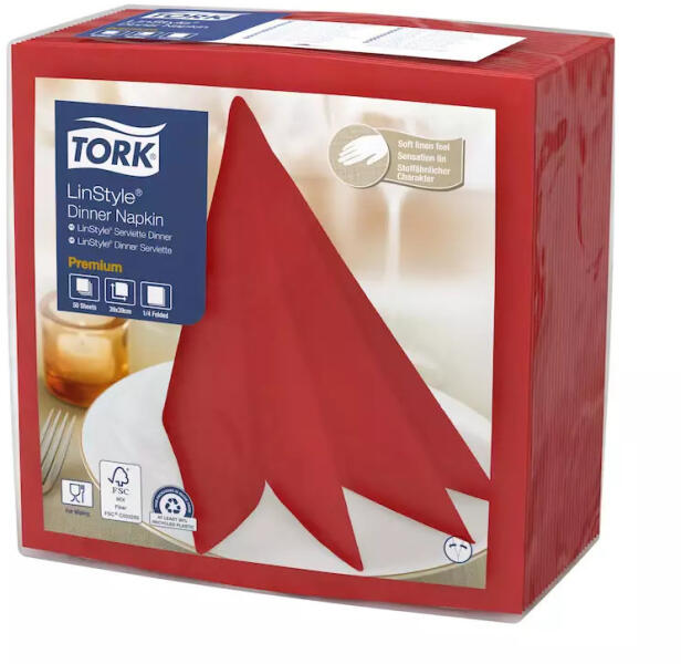 Essity GmbH Tork szalvéta Linstyle, premium textilutánzatú, piros 39/1, 50 darab/ csomag,