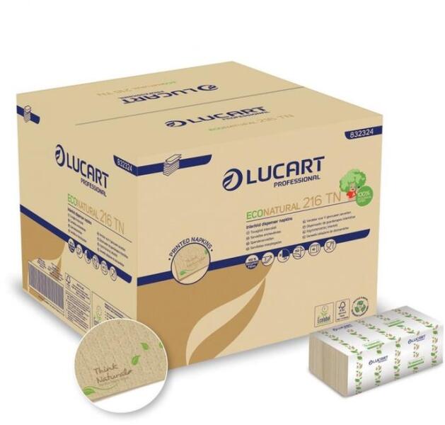 L-One adagolós hajtogatott szalvéták Lucart EcoNatural 216 TN - Think Natural - 2 rétegű - színe: natural - méretei: 16,4*24 cm - 150 lapos - 40 csomag/karton - 36 karton/raklapKatalóguskód: 46417