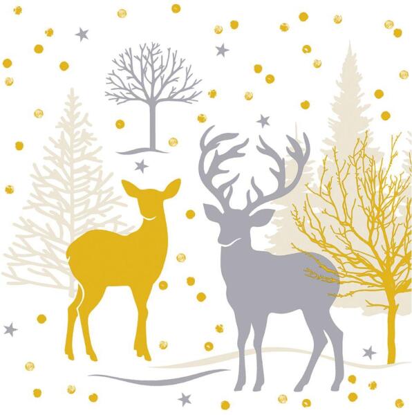 A Josia szalvéta letisztult eleganciát hoz az ünnepi asztalra. Az aranyló és szürke árnyalatokban megjelenő szarvasmotívumok, téli fák és csillogó részletek egyszerre sugároznak ünnepi pompát és modern stílust. A 40×40 cm-es méret nagyvonalú, látványos terítést tesz lehetővé, a textilhatású anyag pedig prémium érzetet nyújt: erős, tartós és kellemes tapintású, mintha vászonból készült volna. Az 50 darabos csomagolás ideális éttermeknek, rendezvényeknek és családi ünnepi alkalmakra is, ahol a dekoráció és a praktikum egyaránt fontos. A Josia szalvéta nemcsak kiegészítő, hanem az ünnepi asztal valódi dísze, amely vendégeid számára különleges élményt teremt.