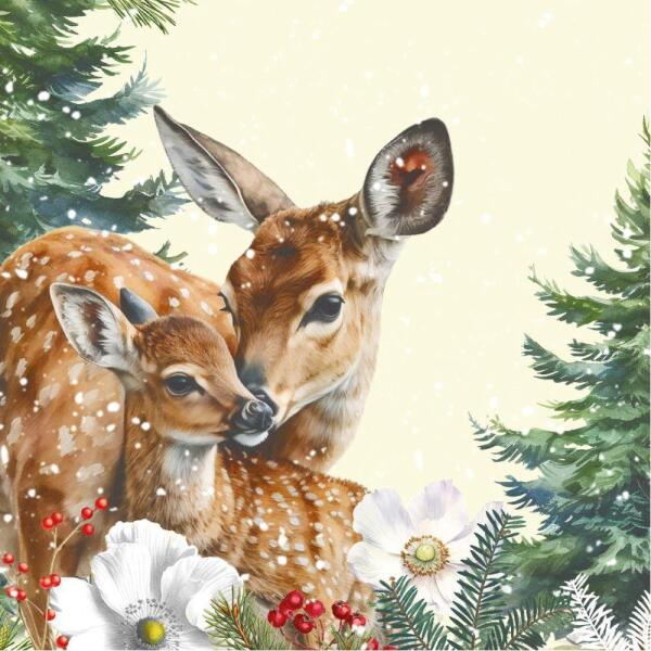 A Kemi szalvéta a karácsonyi meghittség és a természet szépségének tökéletes összhangját hozza el az asztalra. Az előoldalon egy szarvastehén borjával látható, szeretetteljes, bensőséges jelenetben, míg a hátoldalon egy méltóságteljes szarvasbika tűnik fel. Ez a különleges design a téli erdő hangulatát varázsolja vendégeid elé. A 40×40 cm-es méret elegáns és látványos terítést tesz lehetővé, a textilhatású anyag pedig prémium minőséget és kellemes tapintást biztosít. Nem szakad könnyen, tartós, mégis elegáns megjelenést ad, mintha valódi vászonból készült volna. Az 50 darabos csomagolás ideális éttermek és családi ünnepi vacsorák számára egyaránt. A Kemi szalvéta nem csupán praktikus kellék, hanem az ünnepi dekoráció része, amely kiemeli a karácsonyi asztal szépségét és meghittségét. A Kemi névnek jelentése afrikai eredetű :  „erős, „kiemelkedő jelentéssel bír. Ez szépen illik ehhez a szalvétához, ahol a szarvasok a természet erejét és a család védelmező szépségét idézik.