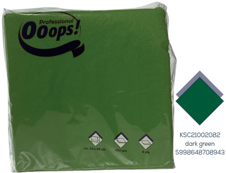 Ooops! Ooops! szalvéta 33X33cm, 2r. , 1/4 hajtás, SÖTÉTZÖLD, 100 lap/csg, 20csg/karton, 42karton/raklap (KSC21002082)