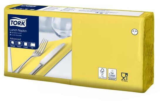 Tork Szalvéta, 1/4 hajtogatott, 2 rétegű, 33x33 cm, Advanced, TORK "Lunch", sárga (KHH319) - irodasziget