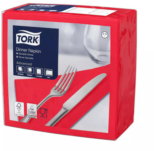 Tork szalvéta Dinner Advanced 39X39, PIROS, 150 lap/csg, 12csg/karton (478752)