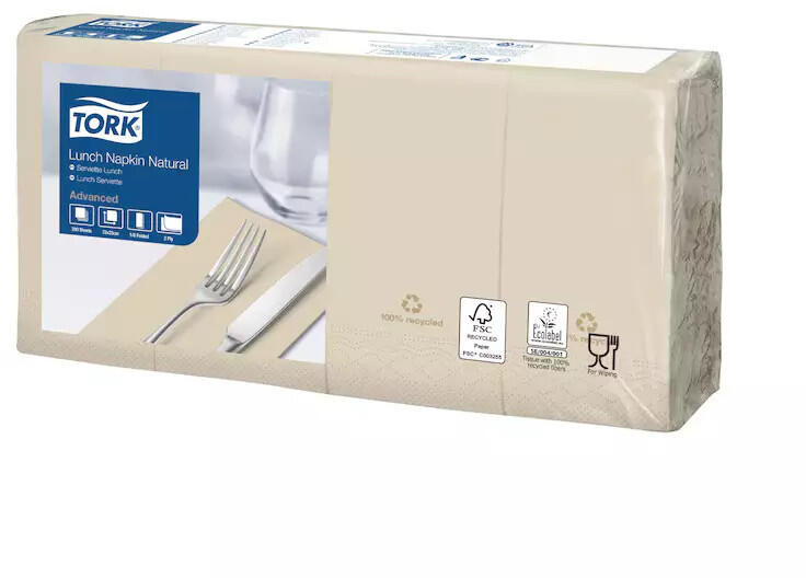 • A fenntarthatóságot szem előtt tartó éttermekben a Tork natúr szalvétákkal egyszerű megmutatni a vendégeknek, hogy Ön törődik a környezettel. A natúr barna szín javítja a vállalat imidzsét, a vendégek pedig felismerik az újrahasznosított szalvétát