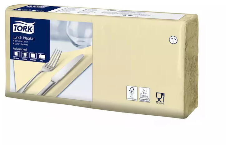A Tork Lunch szalvéták elsősorban könnyű ételekhez illenek. Többféle modern és klasszikus színben kaphatók, így kiválóan illeszkednek bármelyik étterem színvilágához.