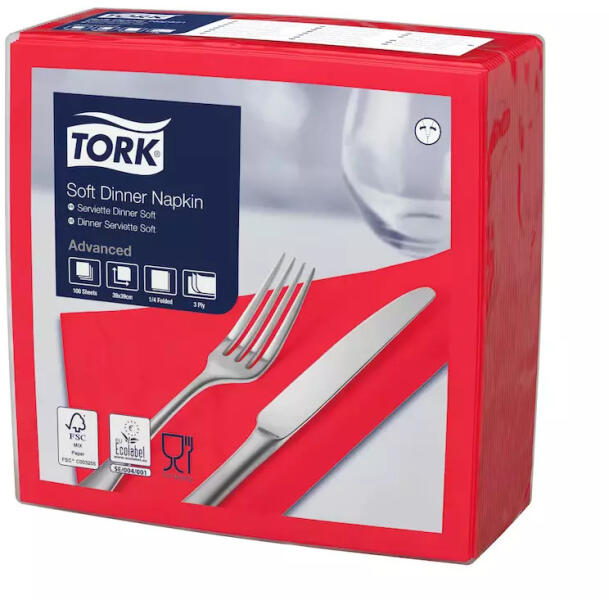 Tork szalvéta Soft Dinner 3r. , 39X39, PIROS, 100db/csg, 12csg/karton (477591)